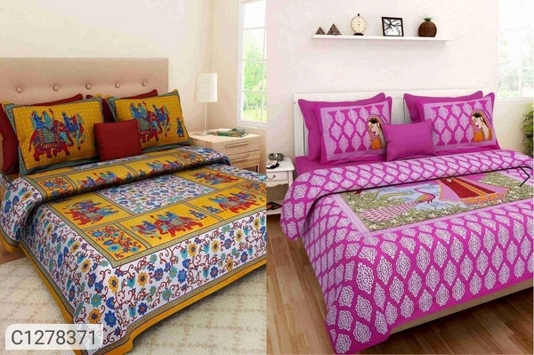 • *Catalog Name:* (Buy 1 Get 1 Free) Jaipuri Printed Cotton Double Bedsheets Vol - 04*Details:*Description: It Has 2 Piece of Double Bedsheet with 4 Pieces of Pillow CoversFabric:- CottonDimension (L X W In Inches); Bedsheet: 90 X 100, Pillow Cover: 17 X 27Work: PrintedThread Count: 180Product Weight: 1200Package Dimensions: 30 x 25 x 7Designs: 1💥