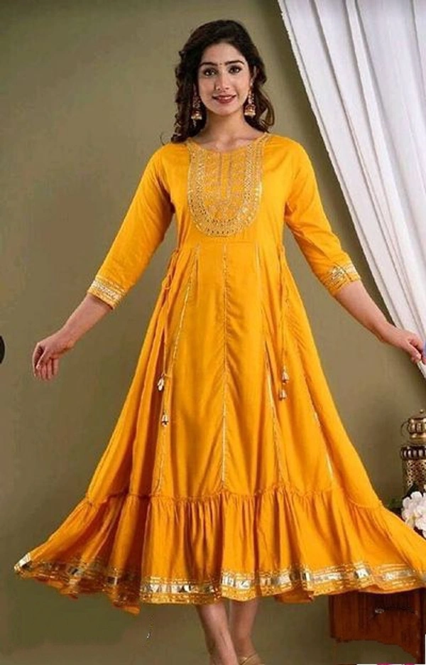 *Fabric*: Rayon Type*: Stitched Style*: Self Design Sleeve Length*: 34 Sleeve Occasion*: Casual Kurta Length*: Long Pack Of*: Single Sizes*: M (Bust 38.0 inches), L (Bust 40.0 inches), XL (Bust 42.0 inches), 2XL (Bust 44.0 inches) Design Type*: Variable Free & Easy Returns,